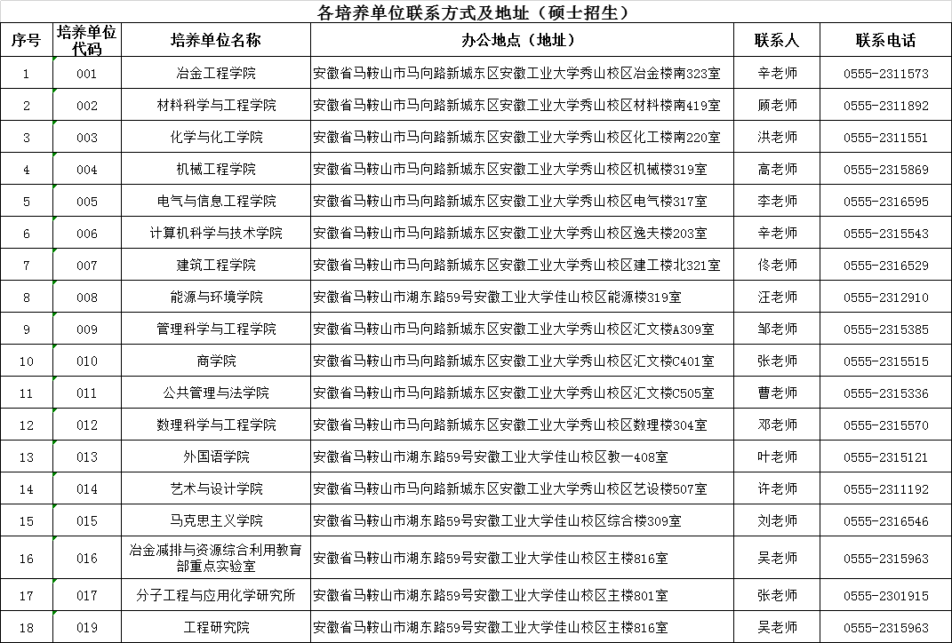 通信地址:安徽省马鞍山市花山区湖东路59号安徽工业大学(佳山校区)研招办