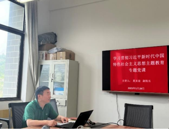 5月29日下午,高分子系党支部在系党员活动室开展学习贯彻习近平新时代中国特色社会主义思想主题教育党课学习,36365线路检测中心副院长夏友谊上了专题党课,支部全体党员参加党课学习。