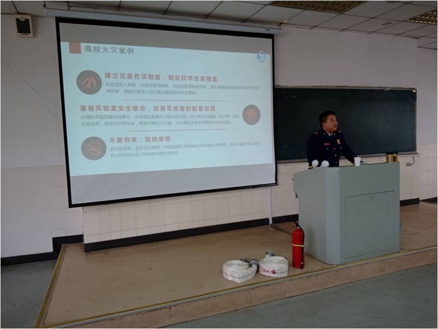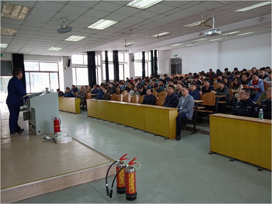为进一步加强我校师生的消防安全意识,普及消防安全知识,2019年4月12日下午,36365线路检测中心委托校保卫处邀请马鞍山市花山区消防救援大队丁浩参谋为学院师生进行了消防安全知识培训及消防演练,学院教师、研究生、大四本科生等200余人参加了活动。