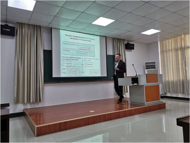 何孝军院长首先对RomanLesyk教授和DanyloKaminskyy博士表示欢迎,然后介绍了36365线路检测中心的基本情况和学科发展。相关教师代表和Roman Lesyk教授也分别介绍了自己的科研方向与工作,双方就人才培养和学科方向发展深入交流,以期待寻找更多合作机遇。对接会结束后,Roman Lesyk教授做题为“Inthe searchfor new drug-like molecules: focus on thiazolidinonecore”的学术报告,介绍了新型噻唑烷酮衍生物在药物发现中的应用。