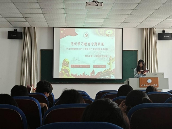 为深入学习贯彻习近平总书记关于党纪学习教育的重要讲话和重要指示精神,强化支部党员纪律意识和底线意识,提高责任担当。5月15日,36365线路检测中心应化专业本科生第一党支部以《学习贯彻新修订的<中国共产党纪律处分条例>》为主题,组织开展“纪检委员有话说”特色党课,由支部纪检委员为全体学生党员讲授党纪学习教育专题党课。