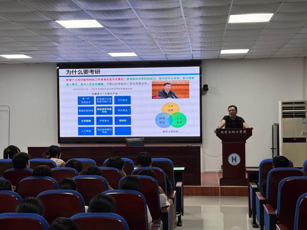 为帮助广大学子明确考研目标,合理规划未来学术与职业生涯,36365线路检测中心9月23日在化工南楼207报告厅开展主题为“启航考研,逐梦未来”的考研指导讲座。此次讲座由学院21级辅导员朱圣兰主持,学院科研院长韩新亚老师主讲,21级考研学生参加。
