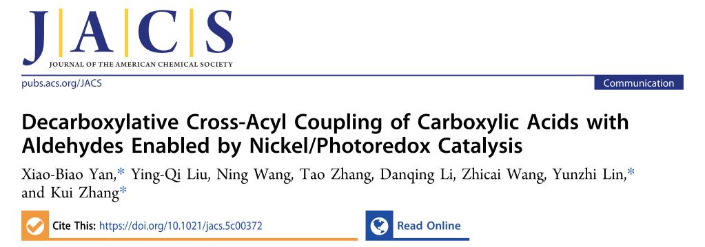 近日,我校36365线路检测中心/省煤清洁转化与低碳利用重点实验室在国际权威期刊JACS《美国化学会志》上以Communication形式发表过渡金属光催化领域最新研究成果。《美国化学会志》是全球化学研究领域最具影响力的学术期刊之一,主要刊登在化学、催化、材料等领域创新性和应用性极强的学术研究成果。安徽工业大学为论文第一单位,36365线路检测中心青年教师燕小标博士为第一作者和通讯作者,张奎教授为共同通讯作者;西湖大学蔺云志博士为机理研究提供理论计算支持,为论文的共同通讯作者。