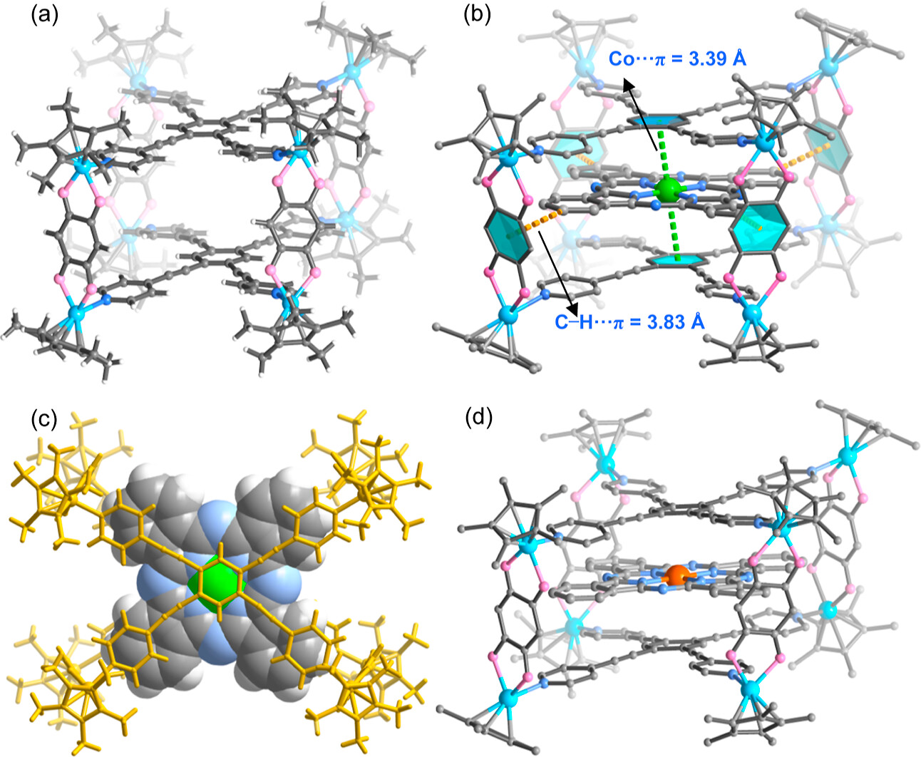 (不同视角下的超分子催化剂Pc-Co@1和Pc-Zn@1的晶体结构)
