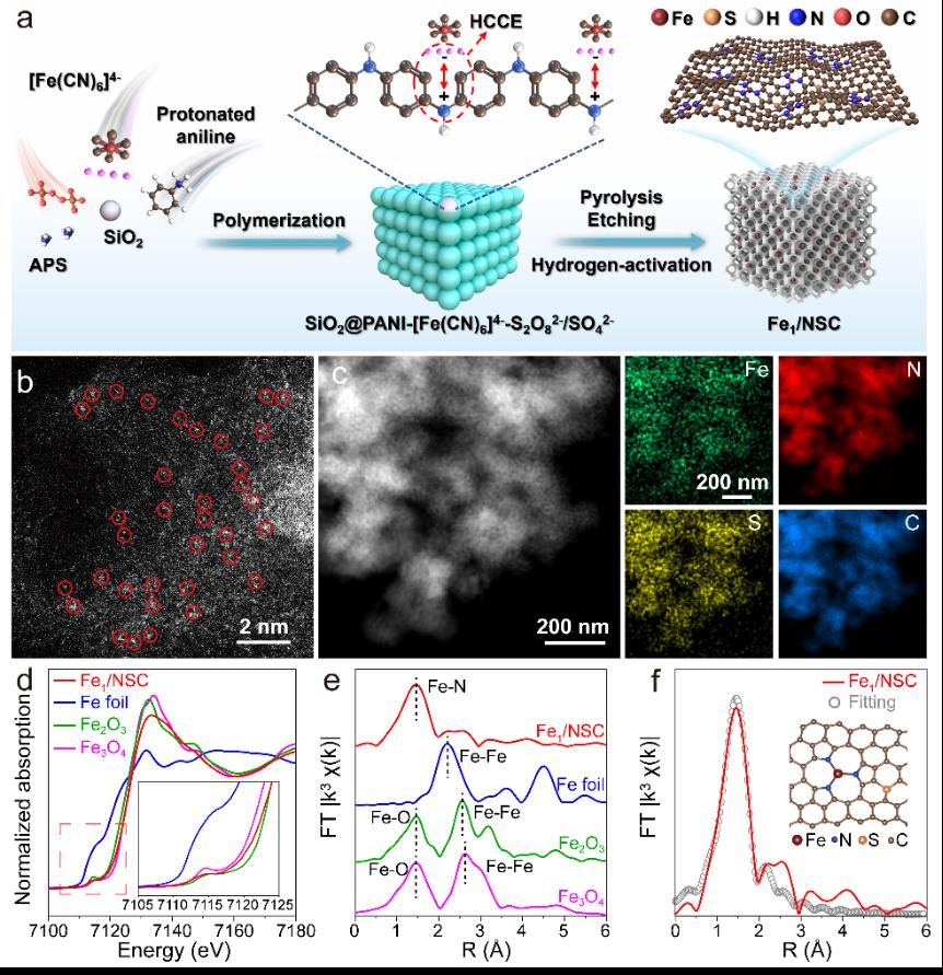 (基于HCCE可控合成Fe1/NSC催化剂的制备示意图及相关表征)