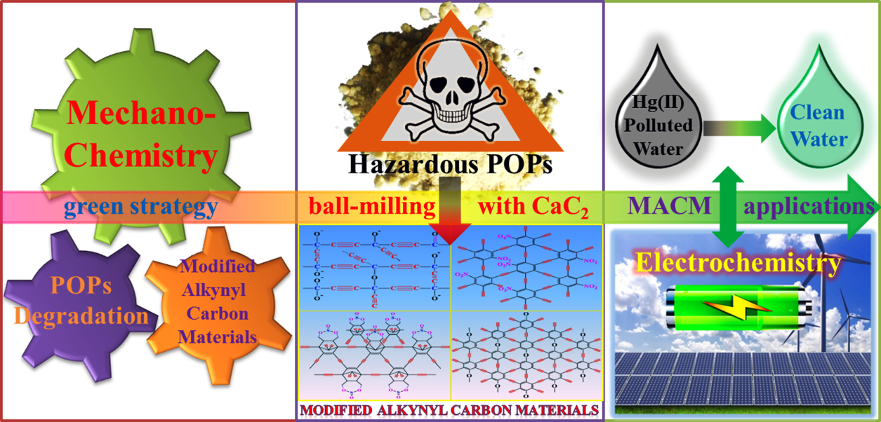 新型碳材料的研发是材料科学领域的重要分支,近年来炔碳材料以其独特的组成结构和巨大的应用潜力,受到科学家们的广泛关注,已成为继石墨烯之后,新型碳材料领域的研究热点和前沿。该课题组率先通过电石的机械化学反应成功制备了石墨单炔类二维炔碳材料,并对其在储能及水处理中的应用性能进行了探究;近期,该团队采用机械化学技术来激活电石的反应活性,从而使之与有机含杂原子的多卤化物反应,成功实现了几种掺杂炔碳材料的合成;通过系统表征初步揭示了该类材料的特异性组成与结构,并对其储能与重金属吸附特性进行了考察。研究发现,机械化学可高效合成掺杂炔碳材料,该类材料具备稳定的炔基键接碳骨架结构和均匀的杂原子掺杂效果,且较原有的无掺杂炔碳材料,其储电性能与电荷传输效率有了很大提升。