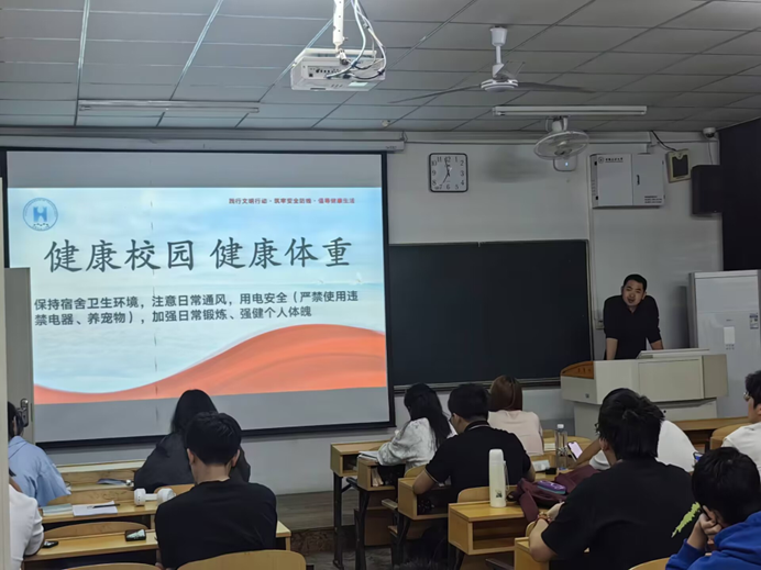 学院通过线上线下宣传、悬挂横幅等多种途径和多种方式宣传健康知识,号召全院师生养成良好的健康卫生习惯,践行文明健康的生活方式;辅导员走入宿舍,积极主动了解学生宿舍卫生情况,进行宿舍文明安全检查;通过主题班会等形式,倡导大学生文明出行、卫生清洁、有礼有序行为……
