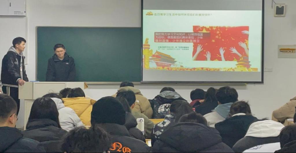 会上,各班结合学习宣传党的二十大精神,围绕“修身立德,厚植爱国情怀”“以学报国,增强爱国本领”两个专题展开讨论。期间,有的同学分享了身边的优秀党员模范事迹,有的立志要存真求实,勇攀科学高峰,有的坚定要成为有“志气、骨气、底气”的新时代青年大学生。现场同学们积极踊跃,气氛热烈。