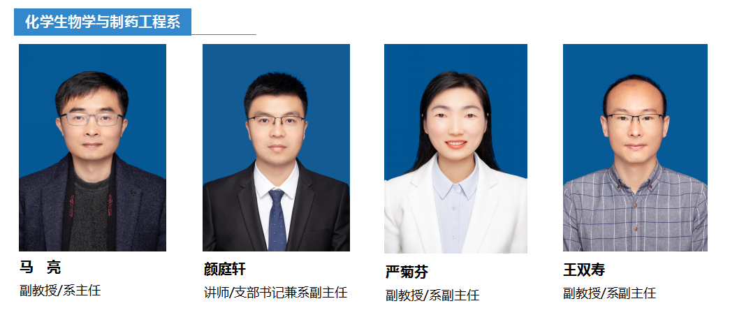 化学生物学与制药工程系现有专任教师16人,包括教授3人,副教授5人,博士生导师4人,硕士生导师11人,全部具有博士学位,其中海外获得博士学位教师5人;拥有国家级高层次人才、安徽省高校杰青、安徽省青年拔尖人才、安徽省教学名师和安徽省战略性新兴产业技术领军人才等省级以上人才5人。近5年,共承担国家重点研发计划政府间国际科技创新合作重点专项任务、国家自然科学基金面上项目等国家级科研项目13项,安徽省教育厅杰出青年科研项目、安徽省重点研究与开发计划项目等省部科研项目16项,建有安徽省能源材料绿色制造与生物技术国际联合研究中心、安徽工业大学生物化工研究中心等一系列科研平台以及完善的本科专业实验室,包括细胞生物学实验室、微生物学实验室、生物化学与分子生物学实验室、药物合成实验室、天然药物化学实验室、药物剂型与分析实验室、化学生物学综合实验室以及化学生物学实训室等。